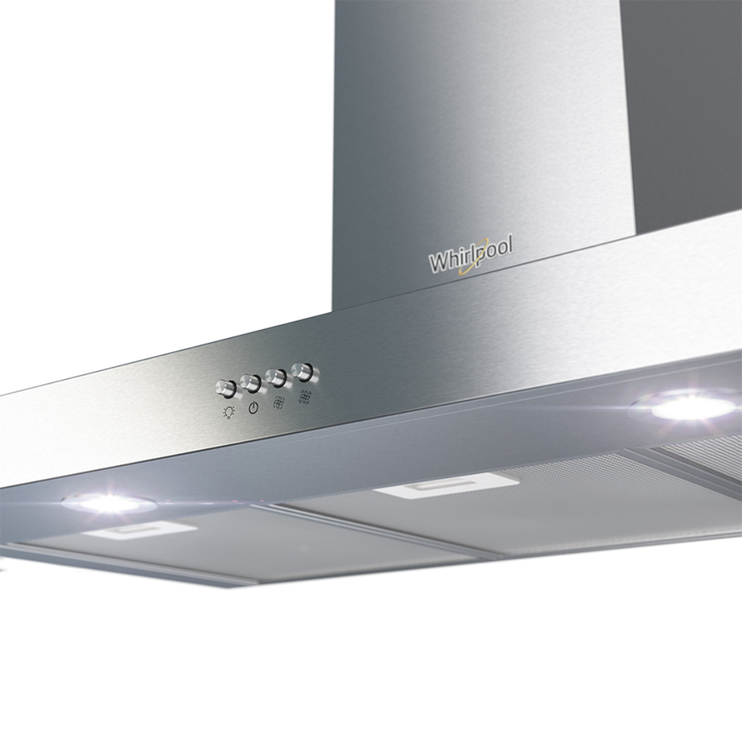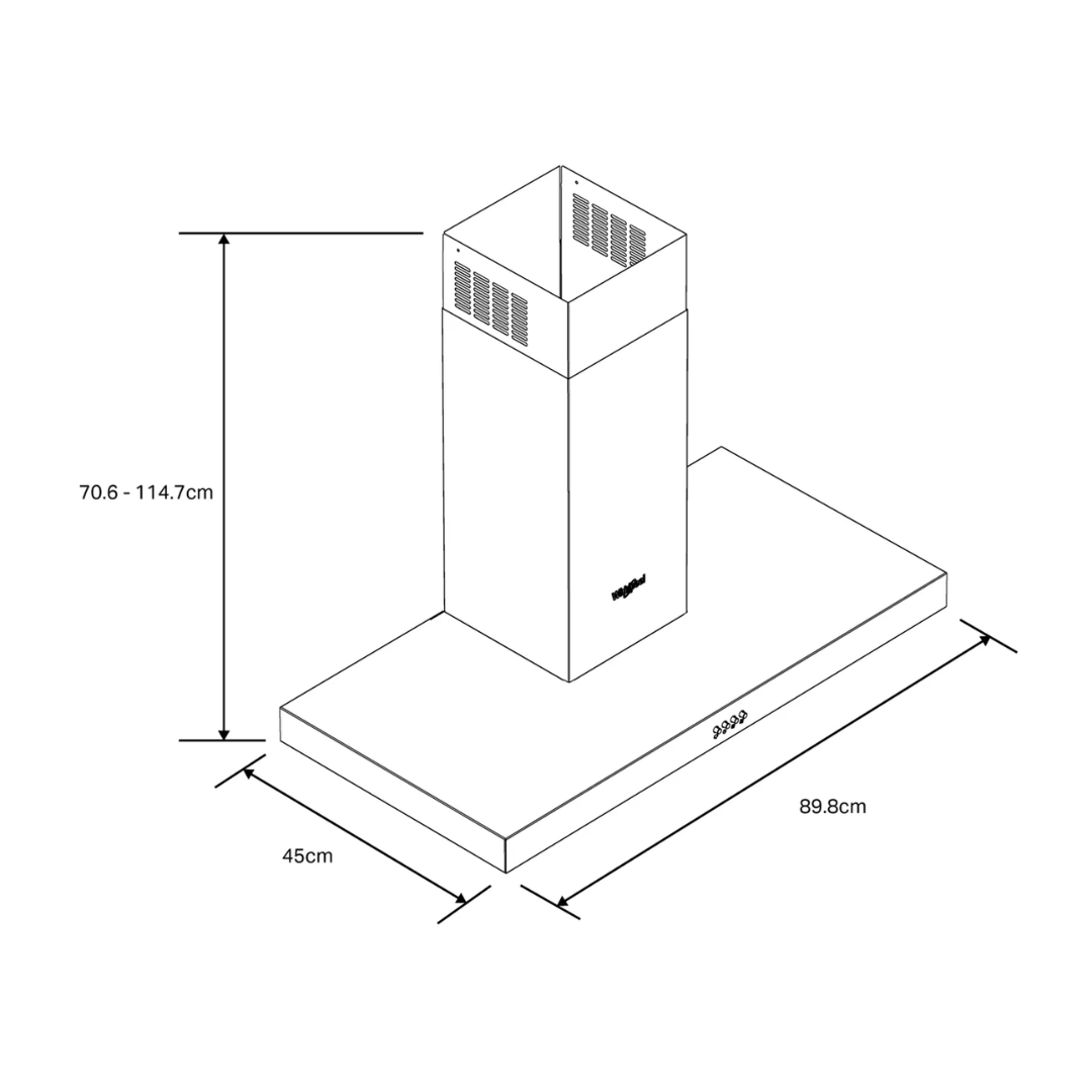 Campana decorativa, montaje de Pared 90 cm. Cuenta con capacidad de extracción hasta 617 m³/hr, 3 velocidades y 2 luces de trabajo LED. El complemento ideal para tu cocina. Cuenta con filtros de aluminio atrapa grasa lavables.