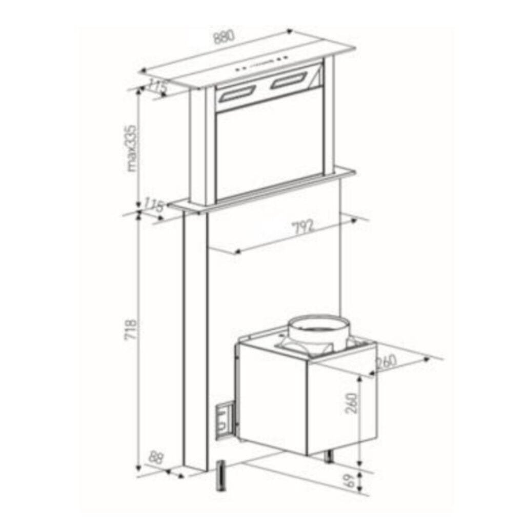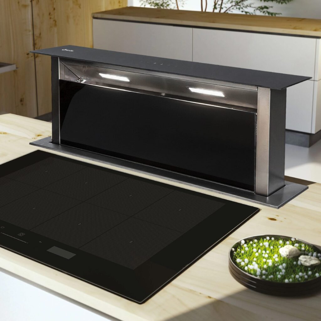 Campana Down Draft de 90 cm: Frontal en cristal.