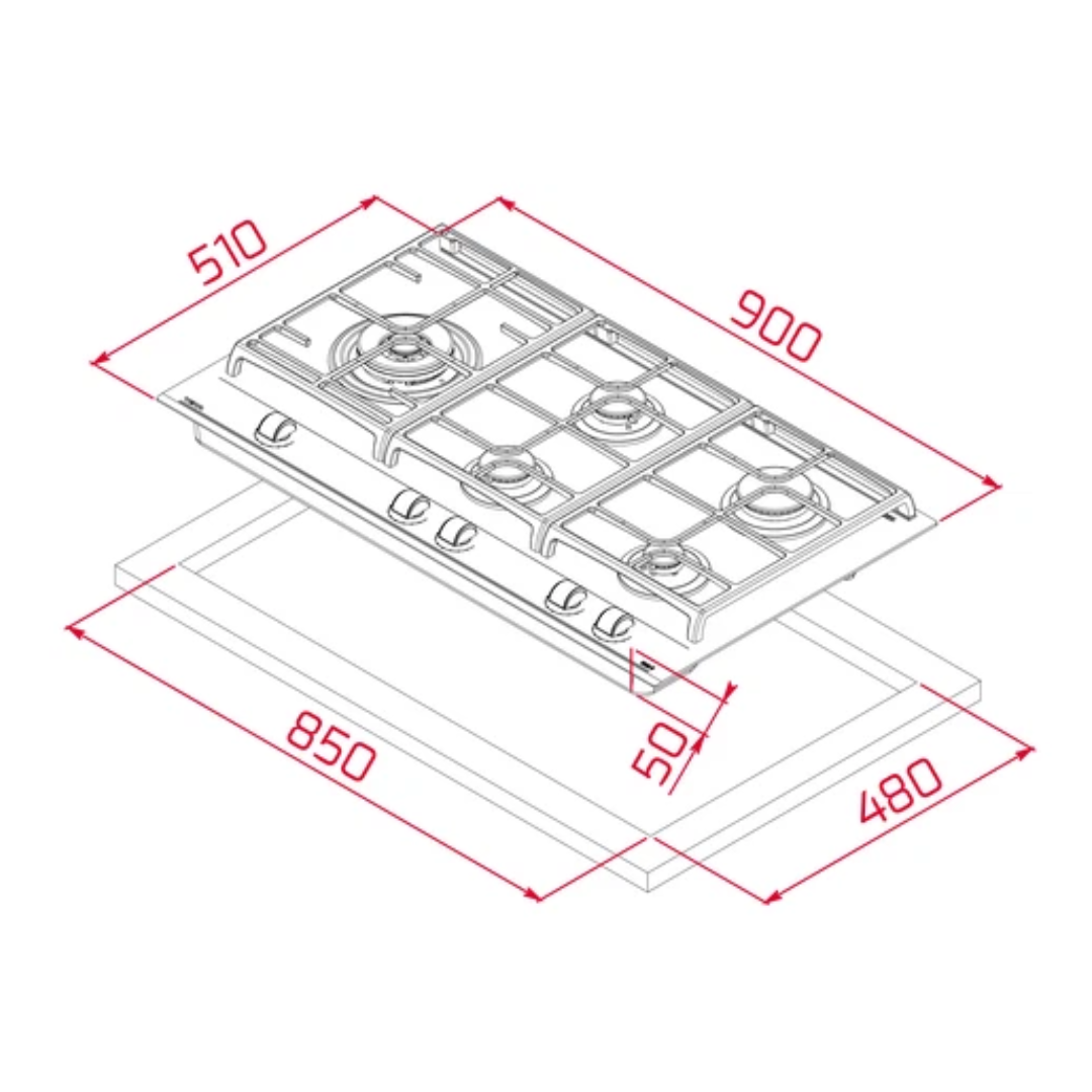 - Seguridad por termopar integrada en cada quemador: válvula de seguridad que bloquea el paso del gas por seguridad en caso de ausencia (derrame o aire).
