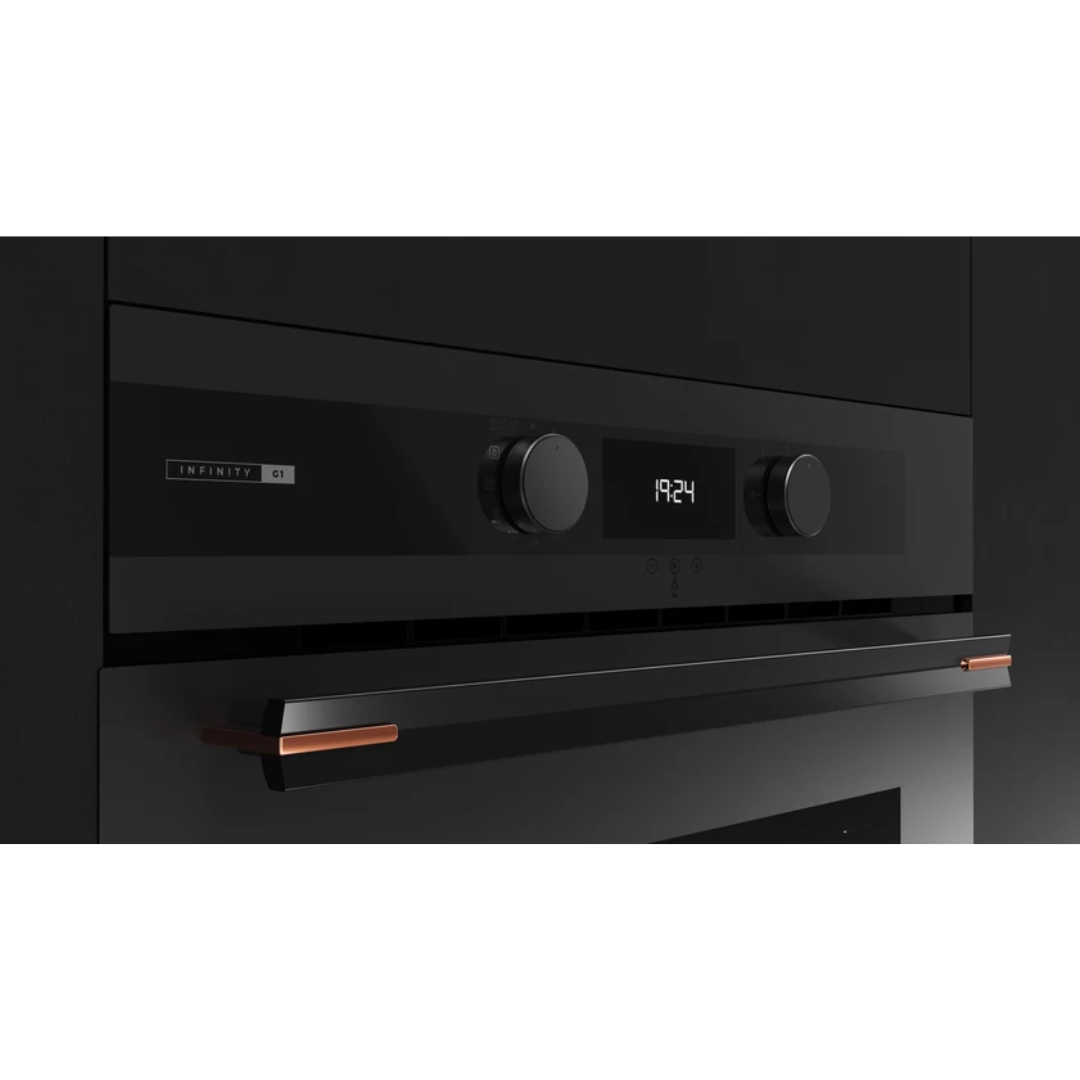 Todos los productos de la edición Infinity G1 cuentan con un exclusivo acabado en negro mate, con una textura que se asemeja al terciopelo, suave al tacto. Los remates en color cobre aportan un toque de distinción y elegancia a todos los productos de esta línea.
