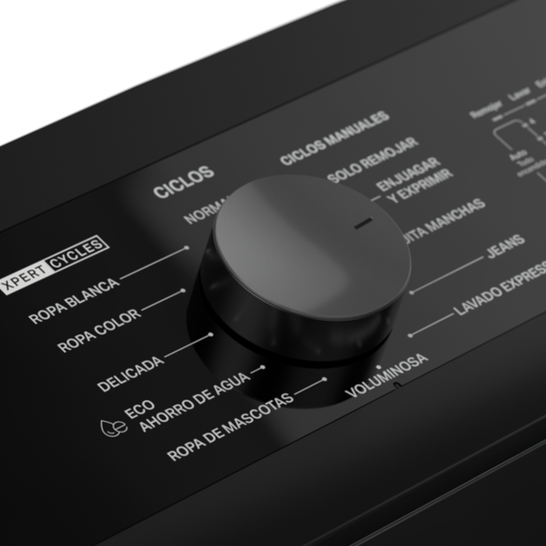 3 Ciclos Xpertos: ajustan automáticamente el tiempo, el nivel de agua y la agitación según el tipo de prenda.