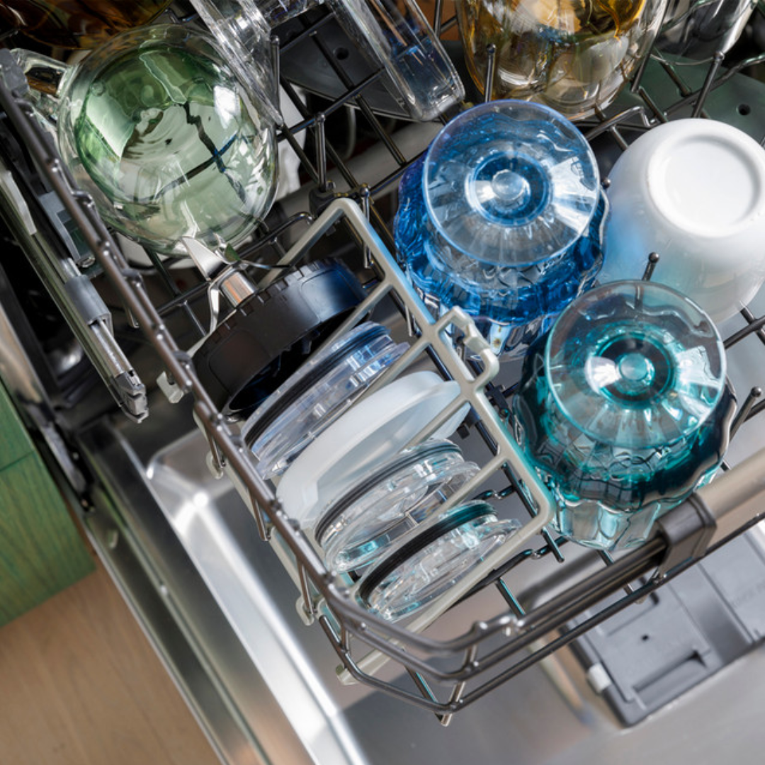 Guarde más que solo cubiertos en esta cesta flexible con boquillas de lavado específicas en la parte inferior. La cesta CustomFit contiene todos sus cubiertos, copas y pajitas reutilizables, para que los artículos que antes se lavaban a mano se puedan lavar con seguridad en el lavavajillas.