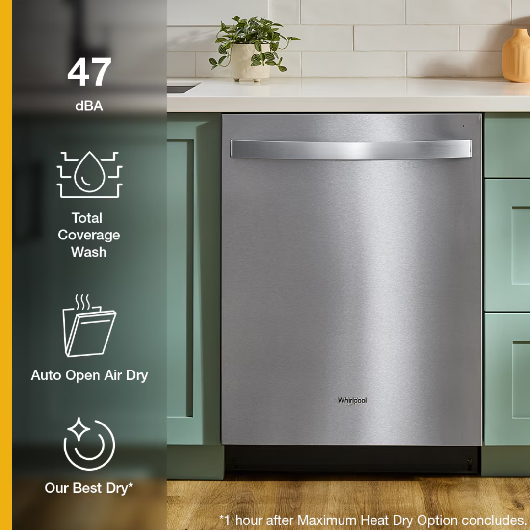 Lavavajillas Whirlpool® de 24 pulgadas con control superior, lavado de cobertura total y secado automático al aire libre en acero inoxidable resistente a huellas dactilares