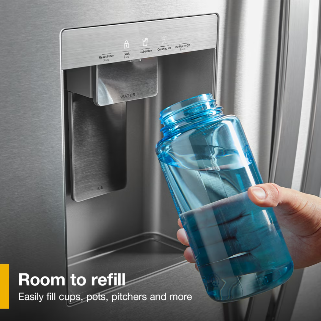 Con 30 pies cúbicos, nuestro refrigerador de puertas francesas de mayor capacidad en su clase* ofrece espacio familiar, una máquina de hielo de gran capacidad y almacenamiento flexible para adaptarse al ritmo de la vida ajetreada de su familia.
